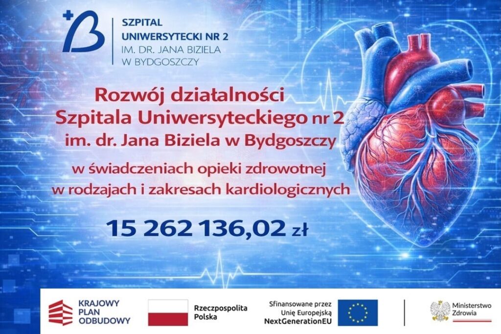 Szpital Uniwersytecki nr 2 im. dr. Jana Biziela w Bydgoszczy trzymał dofinansowanie z Krajowego Planu Odbudowy i Zwiększania Odporności (KPO) w ramach komponentu D „Efektywność, dostępność i jakość systemu ochrony zdrowia” Inwestycja D1.1.1 „Rozwój i modernizacja infrastruktury centrów opieki wysokospecjalistycznej i innych podmiotów leczniczych”